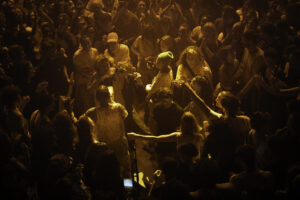 En live, ses rythmes dansants sont joyeusement mis en valeur. À mi-concert, Yamê se faufile dans la fosse pour y danser avec ses fans. Un moment plein de partage, de contact humain, qui écarte les sourires de ses fans. Désormais au milieu du public, on lui apporte son fameux keytar (clavier en forme de guitare) et une douce lumière dorée l’éclaire. Soucieux de son public, l’auteur / compositeur demande à ceux de devant de se baisser, afin que même les plus petits puissent profiter de la prestation acoustique de Kodjo. Tout simplement magnifique.