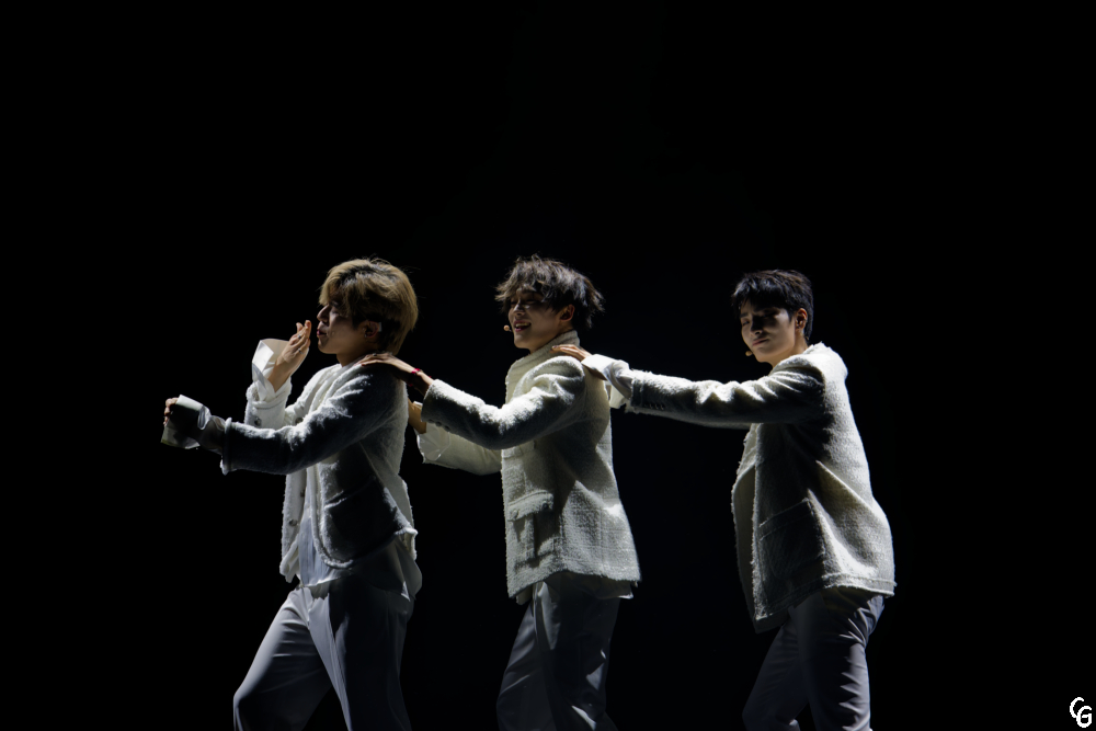 Big Ocean aime la France. Après la Fashion Week, un concert au Café de la danse et la K-Word à Lille, c’est au Bataclan que le groupe nous donnait rendez-vous en cette fin d’année. La France aime aussi Big Ocean. Pour partager ce moment, plusieurs fans avaient revêti leurs plus beaux costumes de fête. Une créatrice avait même méticuleusement confectionné son costume pendant 70 heures. Sous les acclamations du public , PJ, Chanyeon et Jiseok ont très vite galvanisé l’ambiance. Nous avons assisté à un véritable show mêlant chorégraphies et chant. Les moments de récupération permettaient au groupe de K-Pop d’interagir avec ses fans de façon ludique. En effet, les trois artistes sont joueurs et séducteurs. Ils n’hésitent pas à se confier auprès de leur auditoire et à les faire participer à des jeux et concours. Deux spectatrices ont eu la chance de monter sur la scène pour expérimenter la méthode de flirting la plus efficace de chaque garçon. Trois spectateurs costumés ont gagné une photo avec les membres du groupe en fin de concert. Le trio sud-Coréen est aussi porteur de messages plus intimistes et de messages de sensibilisation, notamment lorsqu’ils évoquent leur parcours et leur handicap. PJ, Chanyeon et Jiseok sont sourds et polyglottes. Ils parlent coréen, anglais et communiquent aussi grâce aux langues des signes coréenne, américaine et internationale. Nous pouvons les retrouver dans plusieurs vidéos sur les réseaux sociaux en compagnie d’autres artiste , à qui ils apprennent la langue des signes. Ils collaborent aussi avec plaisir avec des compagnies de danse ou de talentueux danseurs lors de trends ou vidéos.