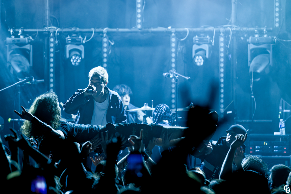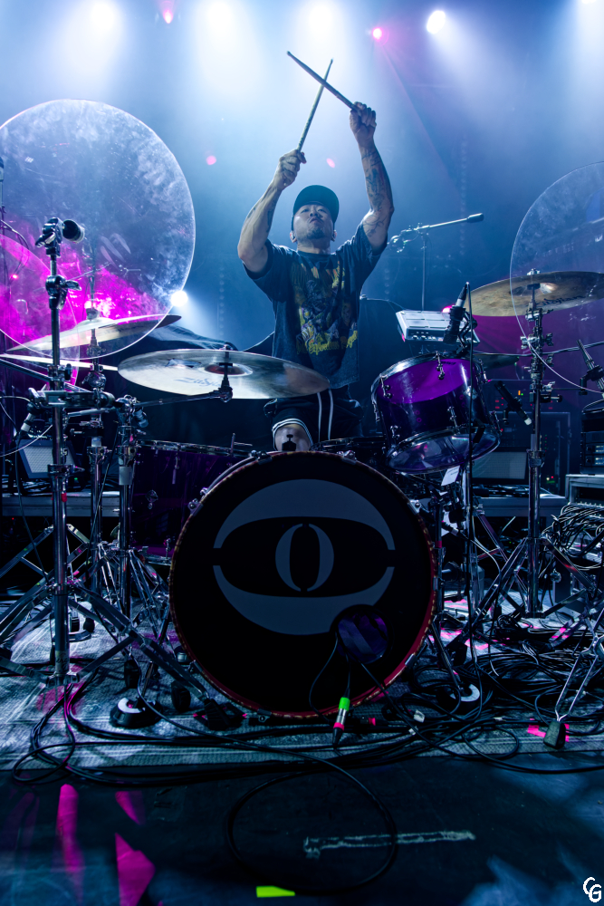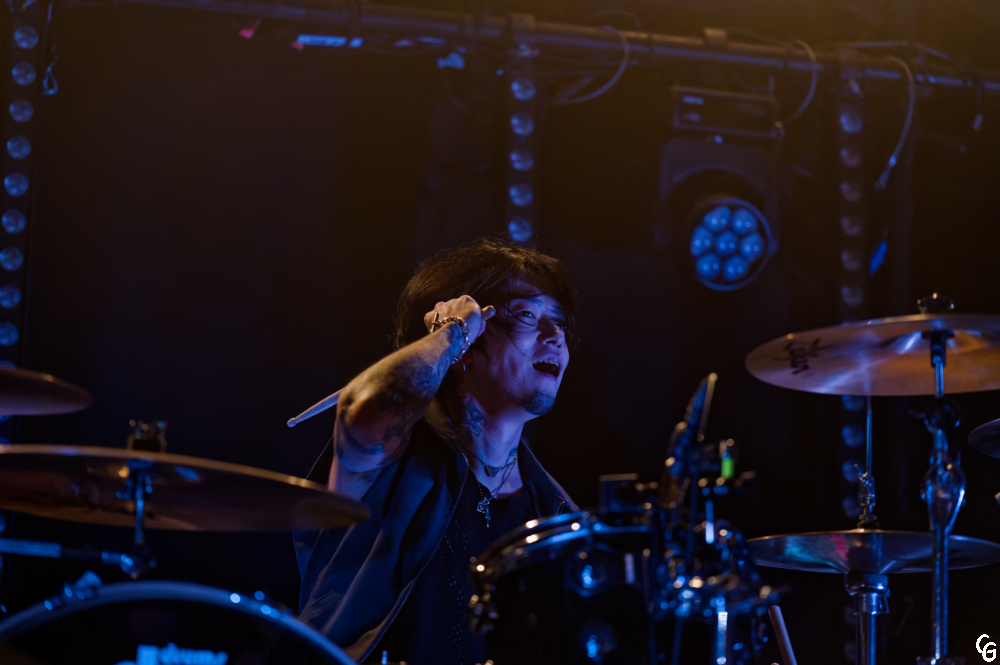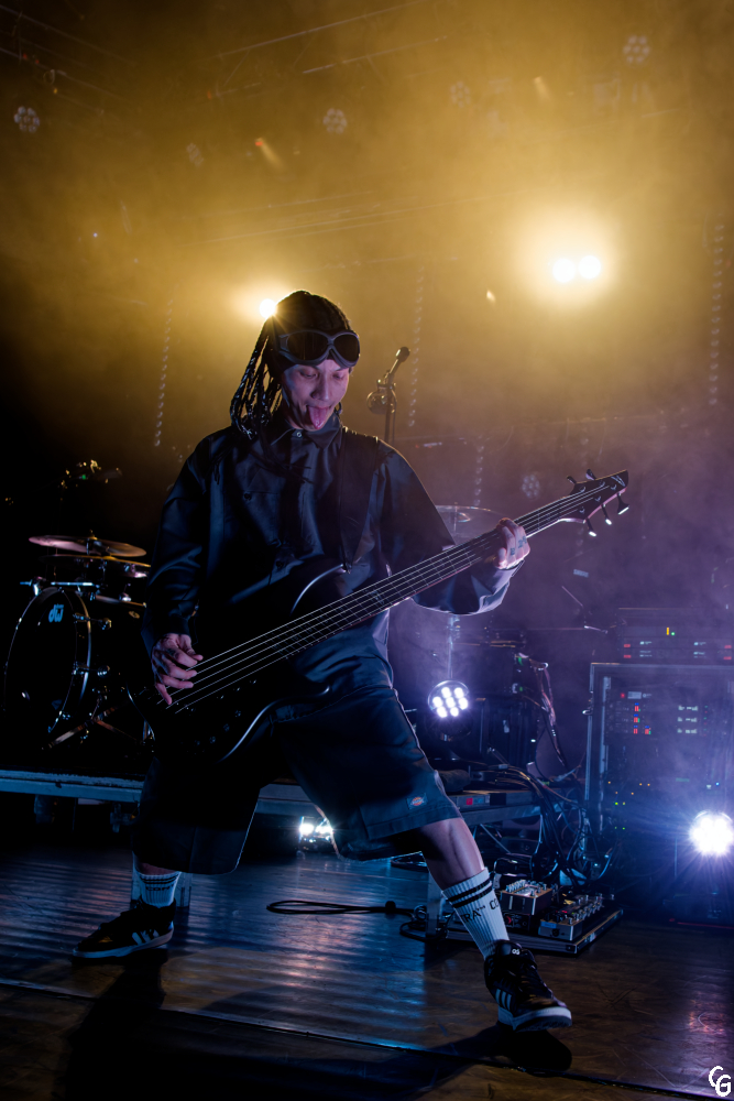 Mission accomplie : les deux précédents groupes ont fait le job. Le Trabendo affiche complet. Les 900 spectateurs attendent avec impatience l’entrée en scène de Coldrain pour slamer, pogoter et faire des circle pits. Le groupe de Metalcore originaire de Nagoya ne les fait pas trop languir et débute avec punch son set par deux chansons de leur nouvel EP, Optimize. La setlist variée ravit les fans de Metal. Elle séduit aussi les fans de pop culture qui auront reconnu certains génériques de leurs animés préféré(Fire Force, Bastard, …). J’ai été séduis par la prestation des cinq musiciens. J’ai aussi été conquis par l’atmosphère de fête générée par un public en feu. Je remercie l’ami qui m’a fait l’univers de Masato, RxYxO, Katsuma, Y.K.C. et Sugi. Sans mon matos photo, je l’aurais sûrement rejoint dans la fosse. Pour la deuxième et dernière anecdote de ce live report, cet ami est aussi présent sur une des photos. Coldrain est un de mes coups de cœur de l’année 2025. Je suivrai avec attention les prochaines dates de leurs tournées.