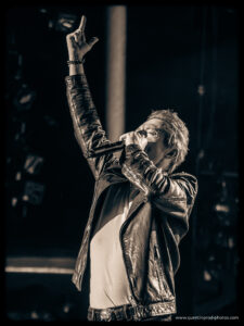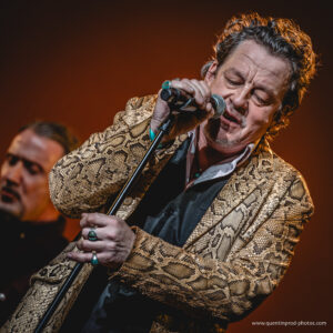 Et pour rendre encore plus singulier cet hommage vibrant au Taulier, Greg Zlap a convié plusieurs invités de choix. La première à le rejoindre fut Gaëlle Buswel, dont la voix a porté Mon cœur qui bat avec une intensité lumineuse. Puis vint la voix de Thomas Dutronc pour un clin d’œil à Elvis sur Grave-moi le cœur (Love me tender), subtile intervention enregistrée qui a donné au titre une douceur chaloupée, entre swing et mélancolie. Sur Ma chérie c’est moi, le belge Marka a apporté son humour, son groove et cette désinvolture élégante qui fait tout son style. Le duo avec Zlap, complice et chaleureux, a résonné comme une respiration au cœur du set. Vint ensuite l’arrivée de Norbert “Nono” Krief, guitariste mythique de Trust, dont les riffs cisaillés ont embrasé L’envie. L’apparition n’avait rien d’anodin : Krief avait lui-même accompagné Johnny Hallyday en studio dès 1986 (sur l’album Gang) puis sur scène de 1987 à 1993, incluant les fameux concerts du Parc des Princes.