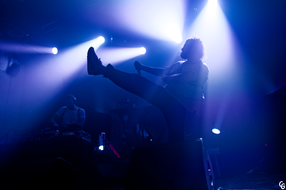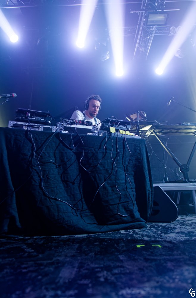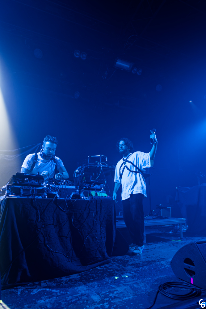 Fermez les yeux et imaginez que vous êtes en train de marcher sur un tapis de course à allure douce. Sentez l’air circuler lentement en inspirant et expirant deux secondes. Ouvrez les yeux à la troisième seconde et sprinter à une cadence frénétique tant que le coach ne vous a pas dit d’arrêter ! La musique impactante de Downterra a eu le même effet que cela sur le public. Celui-ci avait à peine eu le temps de s’échauffer qu’il fût entrainé dans l’univers proposé par les deux artistes, mélangeant Electro et Metal avec panache.