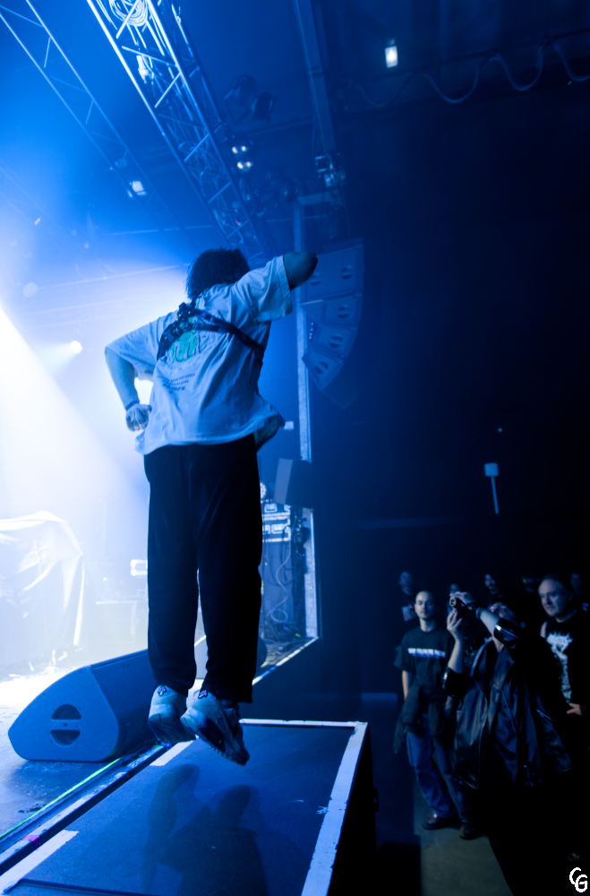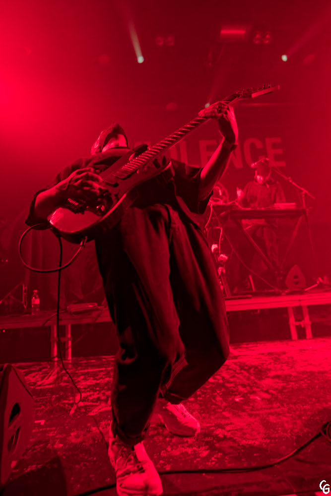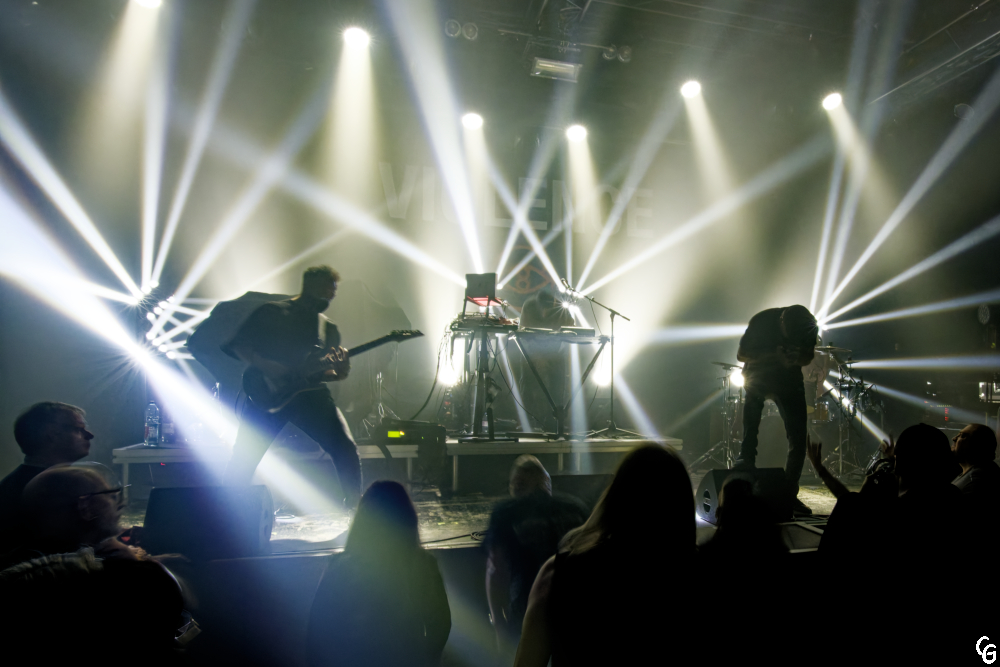 Rien de mieux après un cardio qu’une grosse session renforcement. C’est là qu’intervenait le deuxième coach de la soirée : Violence. Le programme simple et complexe consistait à monter en puissance en restant bien synchronisé avec le son massif et percutant. Bien accompagnés par des tableaux de lumières explosifs, les quatre musiciens sont sur la même fréquence que les spectateurs endurants et ravis d’enchaîner les circles pits et de découvrir de nouveaux morceaux de Violence avant le concert d’Horskh.