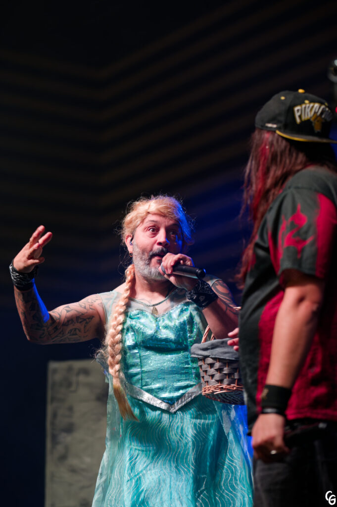 Ce fut une agréable découverte. Le mélange Metal et chansons nostalgiques en hommage à Nokia, Nintendo, aux souvenirs enfouis (comme devenir une princesse) et aux débats concernant la puissance des super héros fonctionne à merveille. Inclure des courses poursuites dans le public, des effets visuels et pyrotechniques rendaient le concert encore plus ludique.