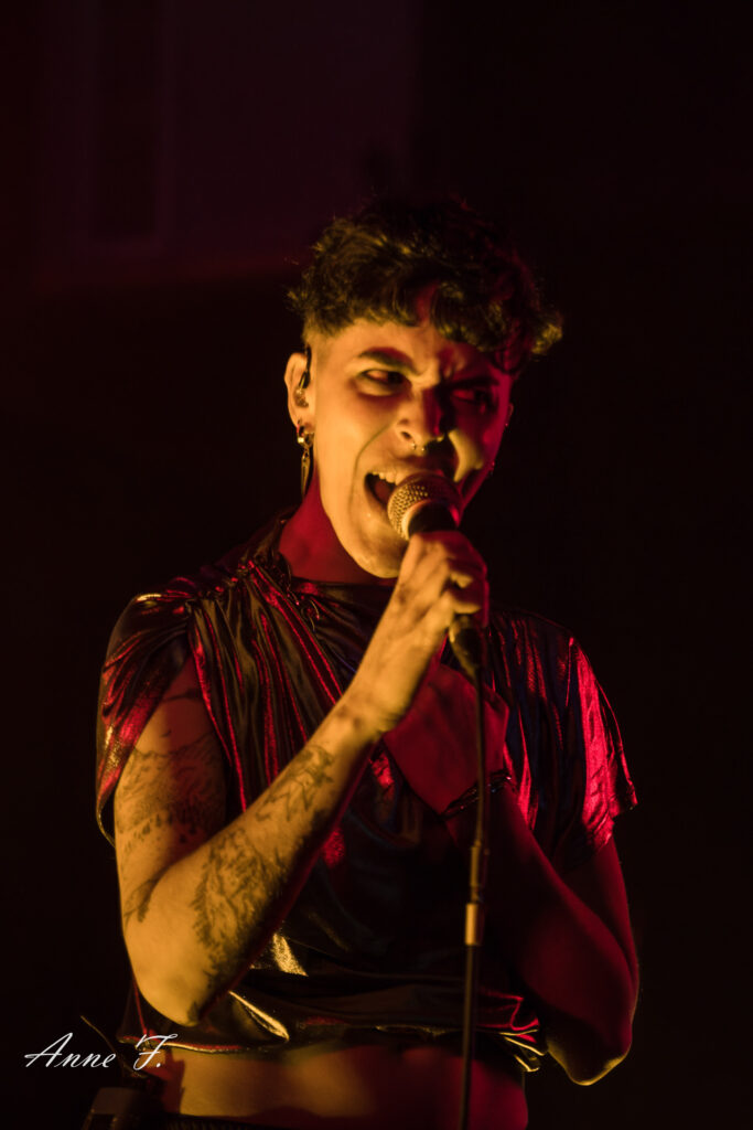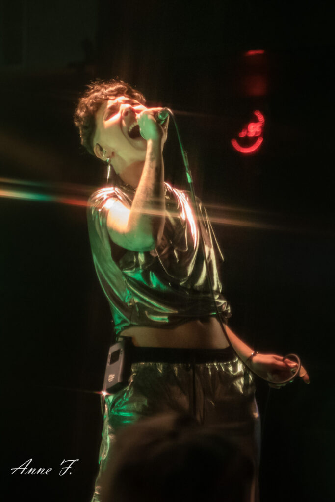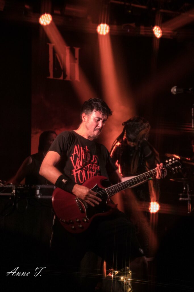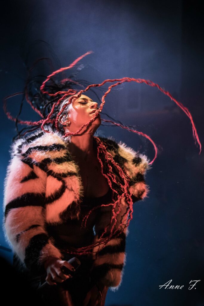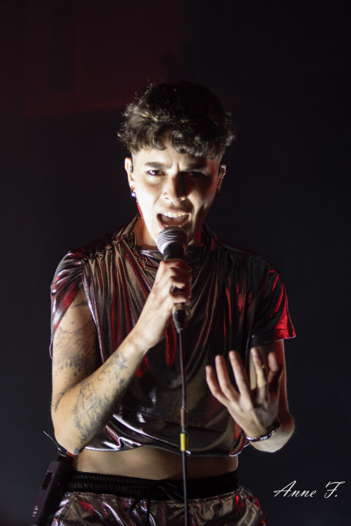 Le collectif musical et graphique La Nébuleuse d’Hima, mené par la chanteuse Faustine Berardo, va aussi mettre tout le monde d’accord. Ce soir, ils seront 5 sur scène, 4 musiciens, et une performeuse. Avec une scénographie qui pose visuellement l’ambiance, ils nous font entrer dans leur univers fusion Metal, Hip Hop et Electro aux larges influences.