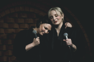 Emilie partage une nouvelle anecdote sur un futur titre où elle met beaucoup de temps à trouver les bons mots. Les deux artistes ont l’instru de cette chanson mais reste encore le second couplet à trouver. Cela n’empêche pas de l’interpréter ce soir. Le thème abordé est le fait de devenir maman. La chanson suivante Cœurs abîmés n’a jamais été jouée sur scène bien qu’elle date de 2021 pendant les confinements liés à la crise sanitaire. Le sujet traité est le contact et l’envie de danser/de sortir. Le titre inédit Dis-moi que tu restes est l’un des titres les plus applaudis ce soir. Une chanson entraînante qui touche tout de suite en plein cœur.