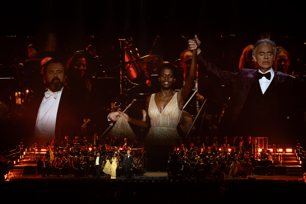 Alternant puissance vocale et moments de grâce, le spectacle, structuré en deux temps entre opéra et chansons populaires, a confirmé la capacité intacte de Bocelli à émouvoir aux larmes son public. »