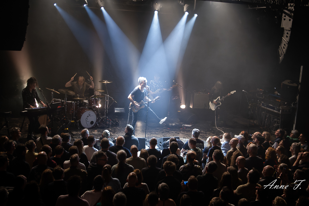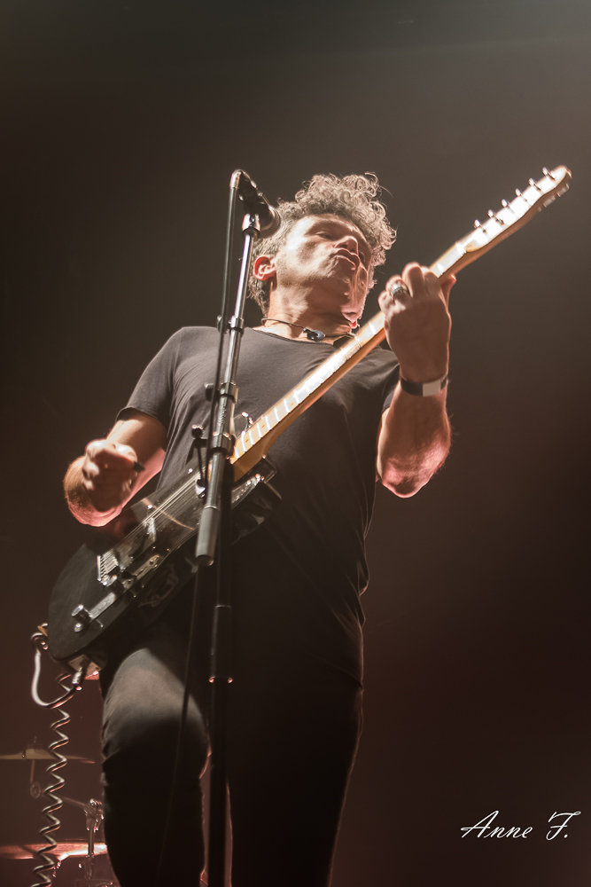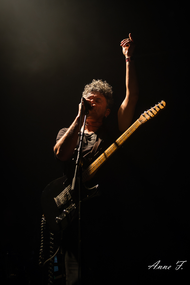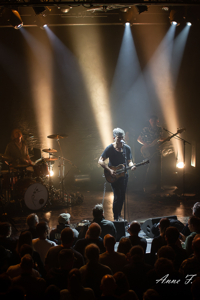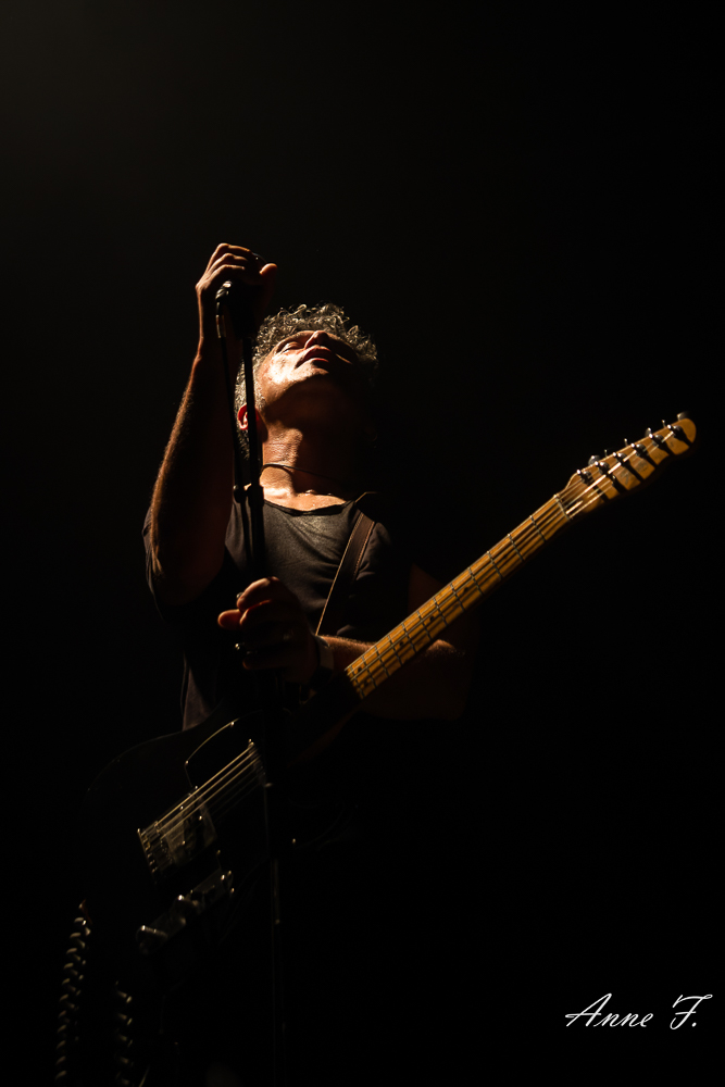 La salle est bien pleine quand débute le concert d’Eiffel. Avec une carrière longue de plus de 25 ans Eiffel est maintenant une tribu plus qu’un groupe, Romain Humeau ayant choisi récemment de fusionner le groupe avec son projet solo, les deux étant très proches artistiquement. C’est devant un public tout acquis à sa cause qu’Eiffel va jouer ce soir, le groupe est venu de nombreuses fois dans cette salle qu’il connait bien.