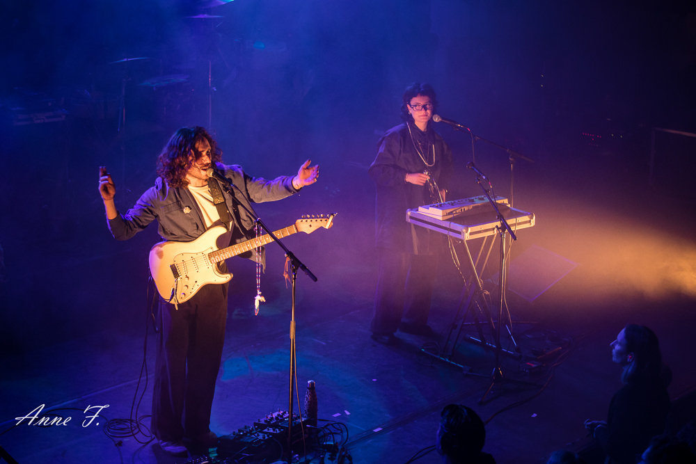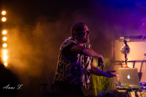 Dans la pénombre, Luzao nous fait entrer dans son univers de musiques latines, à la croisée des influences urbaines et des sonorités africaines. Le set démarre doucement, presque en retenue, puis le groove s’installe. Accompagné de Lucille Moussalli à la trompette et au clavier, il capte l’attention du public qui arrive petit à petit pour finir par remplir la fosse.