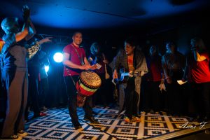 Une petit surprise attend le public dans le club : la chorale sauvage, créée spécialement pour l’évènement avec des spectateurs de la soirée, animée par Singe vient chanter quelques morceaux, rejoint par l’accordéoniste de la Yegros.